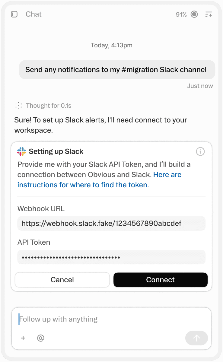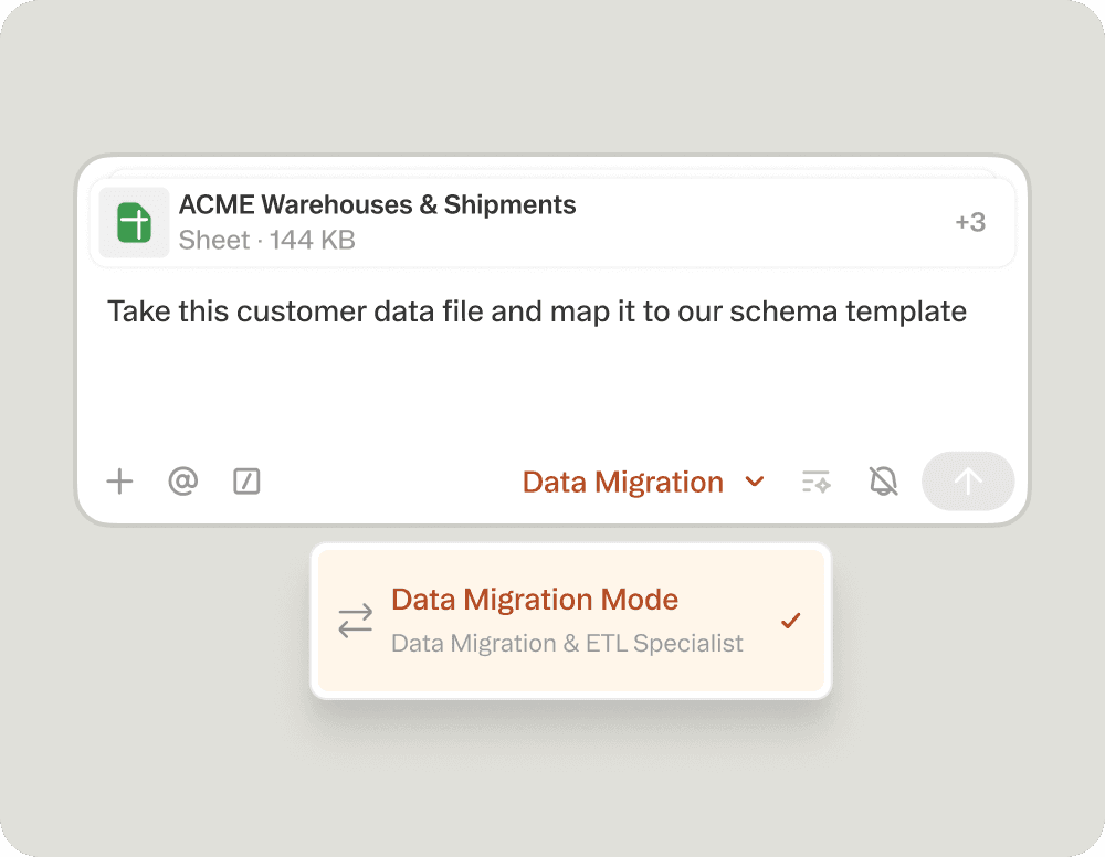 You tell the agent what tools are in your tech stack; it builds the integrations it needs to work with and migrate your data.