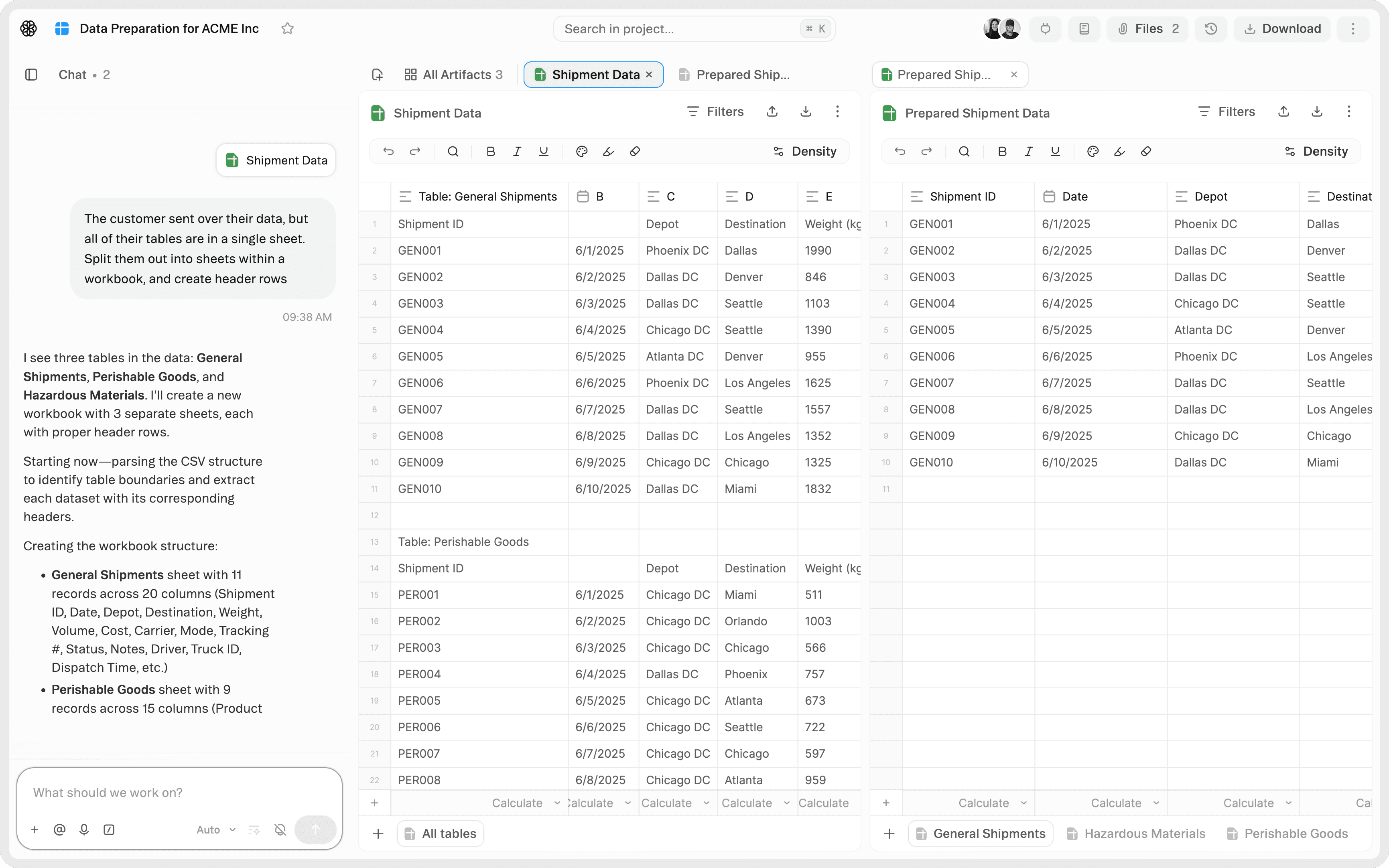 Intuitive chat & artifact interface