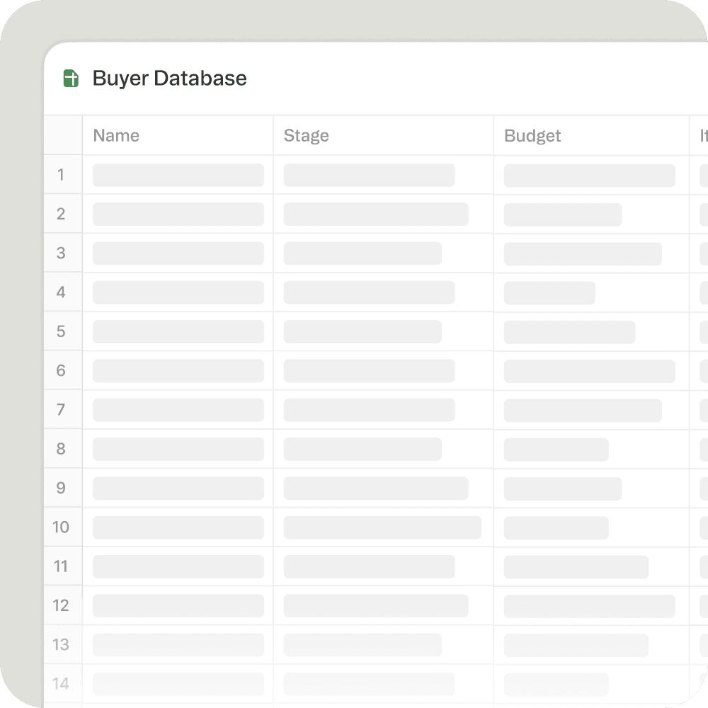 Build a complete client tracking system across buying and selling stages. Use sheet_operations, create_kanban_from_sheet, validate_data, create_calendar_from_sheet. Create: Client Database workbook (contact information, property interests, budget, timeline, financing status, relationship type, lead source); Pipeline Kanban (lead → consultation → active client → under contract → closing → past client); Buyer Workflow board (property search → showings → offer → inspection → appraisal → closing); Seller Workflow board (listing consultation → listing agreement → active listing → pending → closed); Follow-up Calendar (consultation reminders, check-in dates, anniversary touchpoints, market update schedule); Transaction Timeline (key dates, contingencies, deadlines for active deals); Communication Log (emails, calls, meetings, preferences, notes). Output: Complete client pipeline with automated follow-up workflows and transaction tracking.