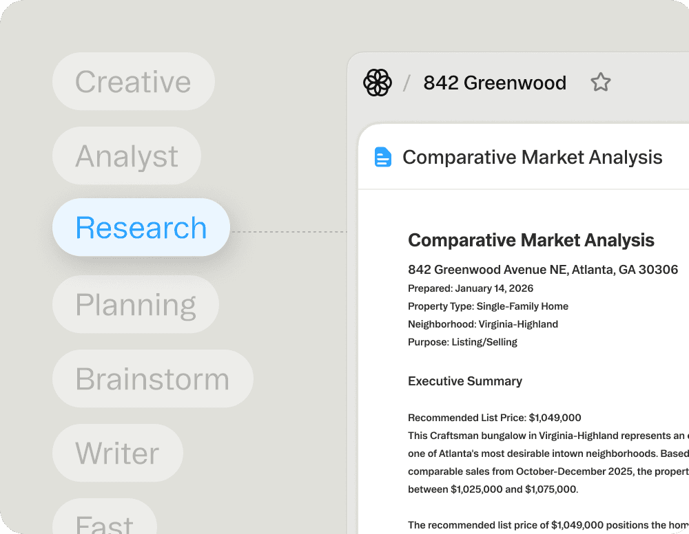 You've got a listing appointment tomorrow. That means pulling comps from the MLS, calculating square footage adjustments, analyzing market trends, and building a presentation deck.