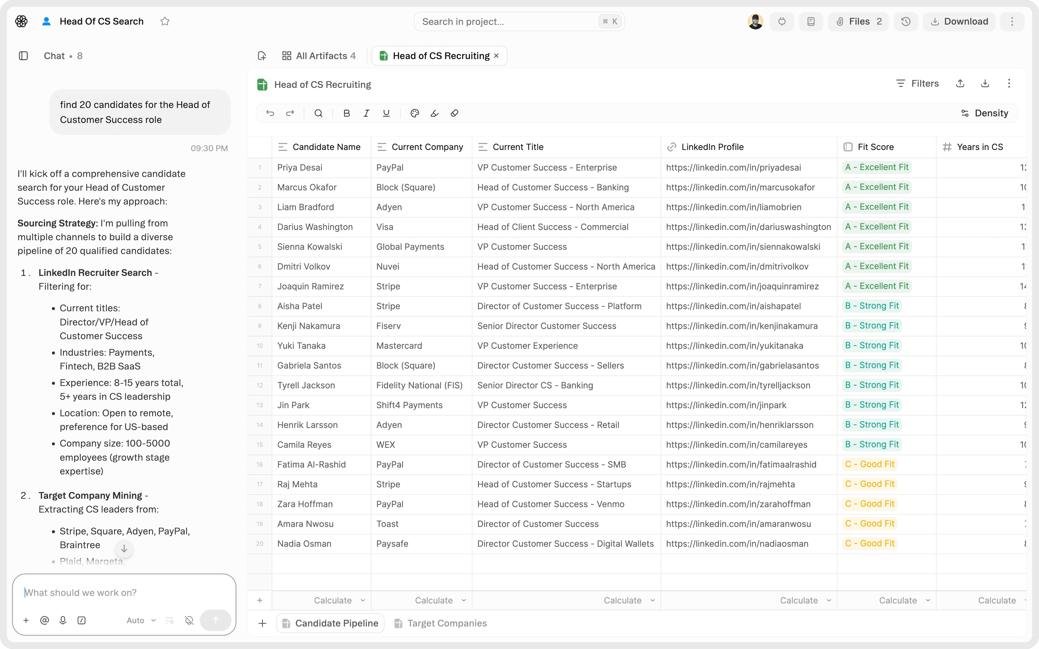 Intuitive chat & artifact interface